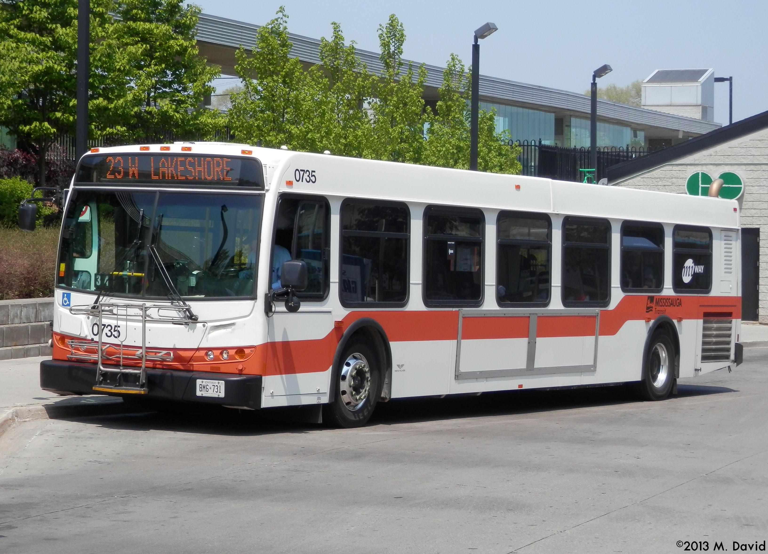 | current | 02:06, 20 January 2014 | 3,264 × 2,358 (829 KB) | Mad Mark (talk | contribs) | MiWay 0735, a 2007 New Flyer D40LFR, is seen waiting for passengers on route 23 Lakeshore at the Port Credit GO Station. |