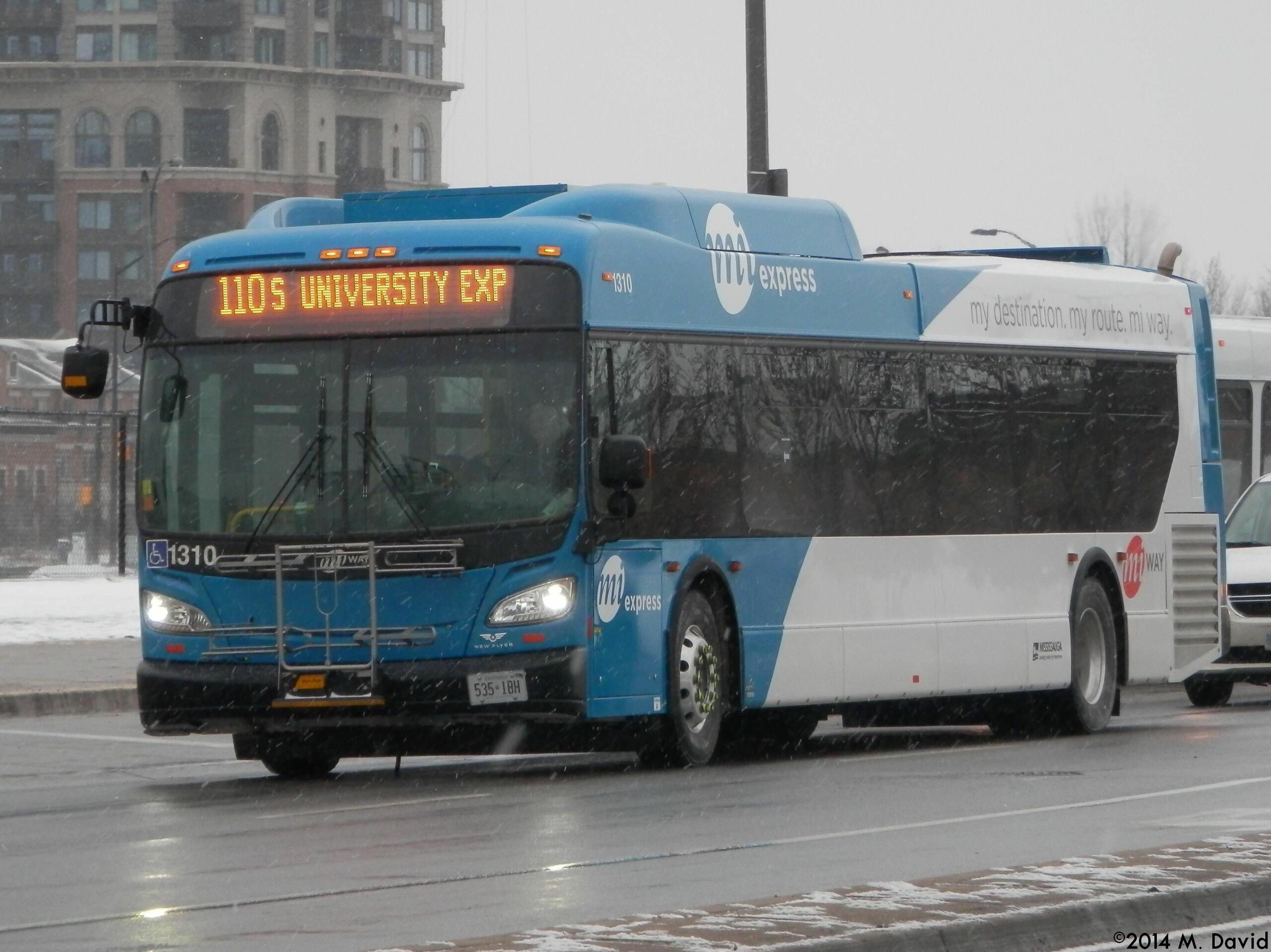 | current | 00:59, 20 January 2014 | 3,117 × 2,335 (573 KB) | Mad Mark (talk | contribs) | MiWay 1310, a 2013 New Flyer XD40, is seen working route 110 University Express on Rathburn Rd. W. This series of XD40s are in the MiExpress livery, and provide service on MiExpress routes. |