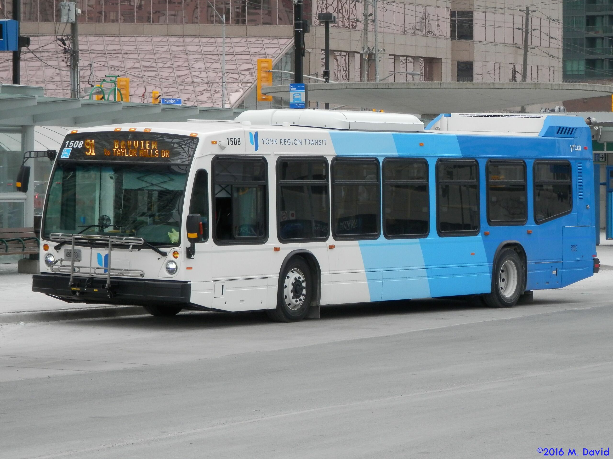 YRT 1508, a 2015 Nova Bus LFS, is seen waiting for passengers on route 91 Bayview at Finch GO Bus Terminal.