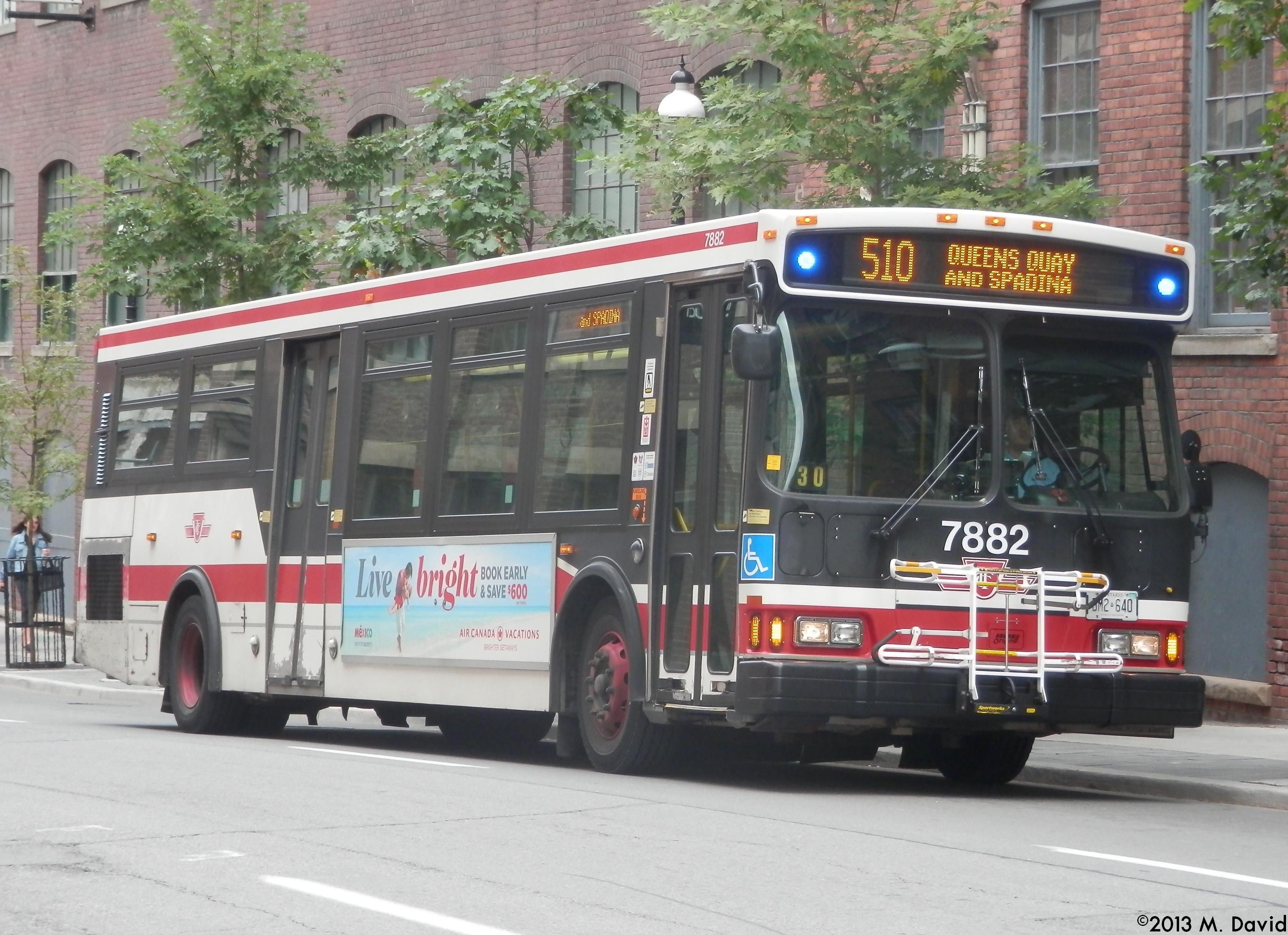 | 03:24, 5 December 2015 | TTC 7882.jpg (file) | 865 KB | Mad Mark | TTC 7882, a 2005 Orion VII, is seen laying over on route 510 Spadina on Richmond St. W. in downtown Toronto. At the time this photo was taken, shuttle buses replaced the 510 Spadina streetcar due to track reconstruction on Spadina Ave. This bus was p... | 1 |