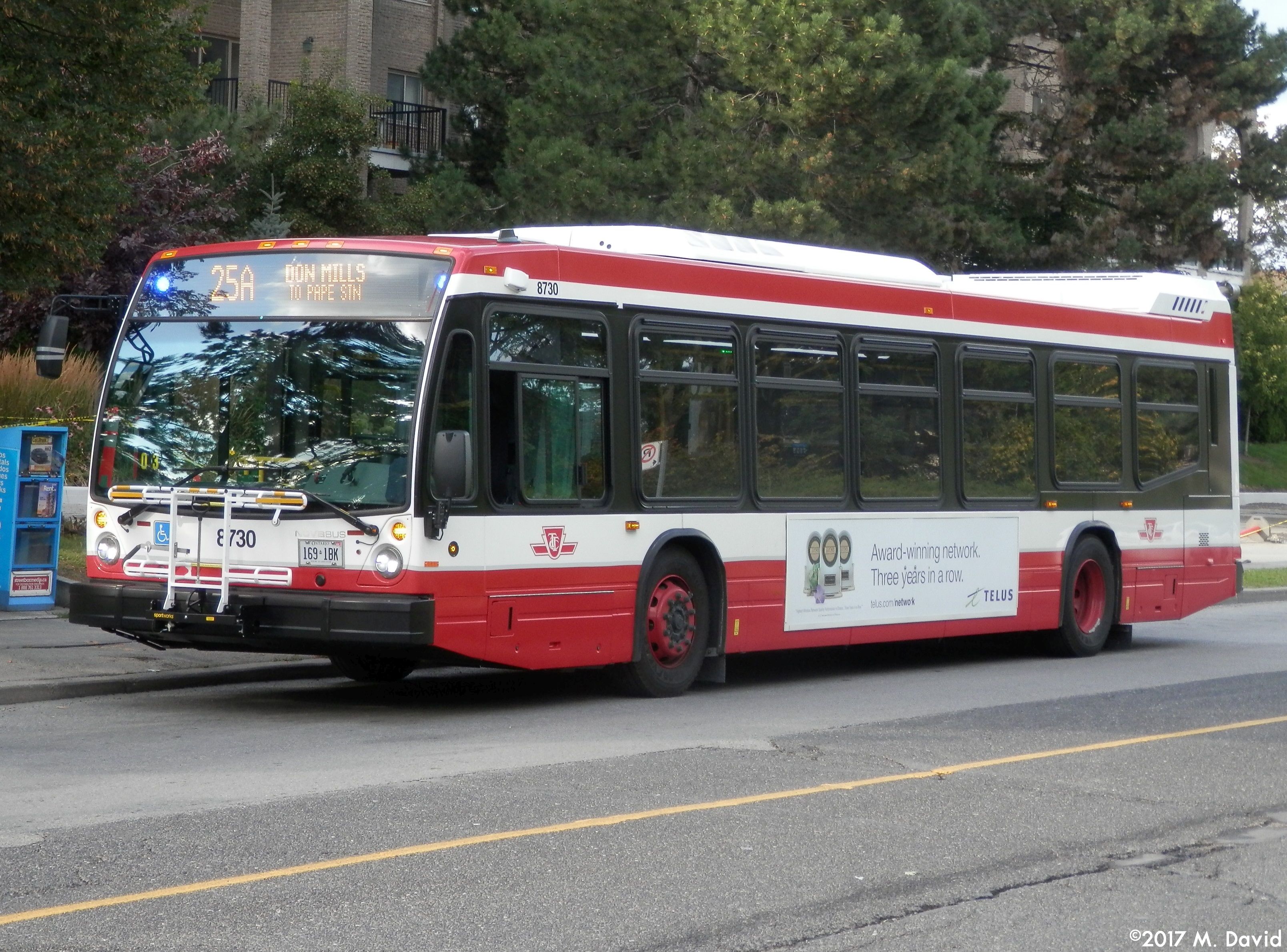 | 17:40, 9 October 2017 | TTC 8730.jpg (file) | 1.19 MB | Mad Mark | TTC 8730, a 2017 Nova Bus LFS, is seen waiting for passengers on route 25A Don Mills at the intersection of Freshmeadow Dr. and Don Mills Rd. | 1 | |